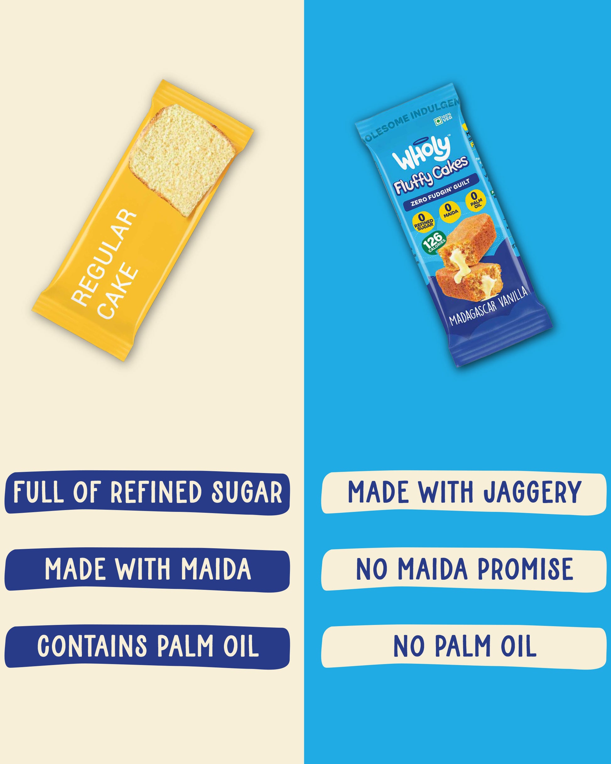 Wholy’s Madagascar Vanilla Fluffy Cake is soft, dreamy, and deliciously guilt-free. With real vanilla extract, creamy indulgence, and clean ingredients, this cloud-like cake lifts your mood without weighing you down. Whether you're snacking at work or treating yourself post-gym, it’s pure fluffy joy, zero guilt attached.